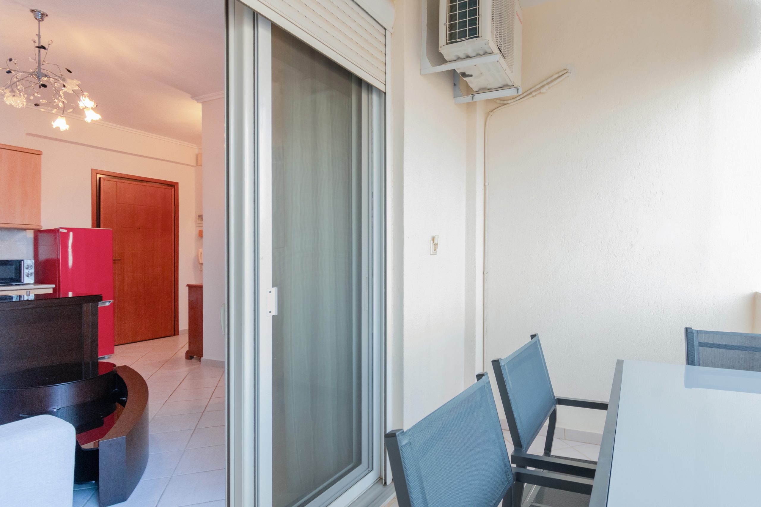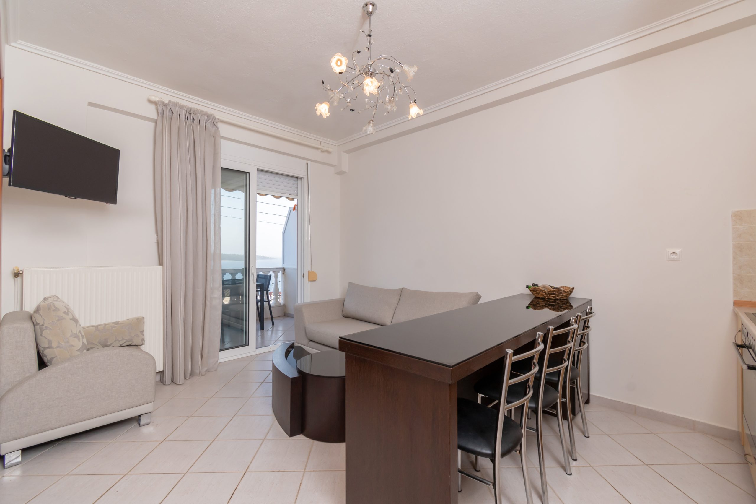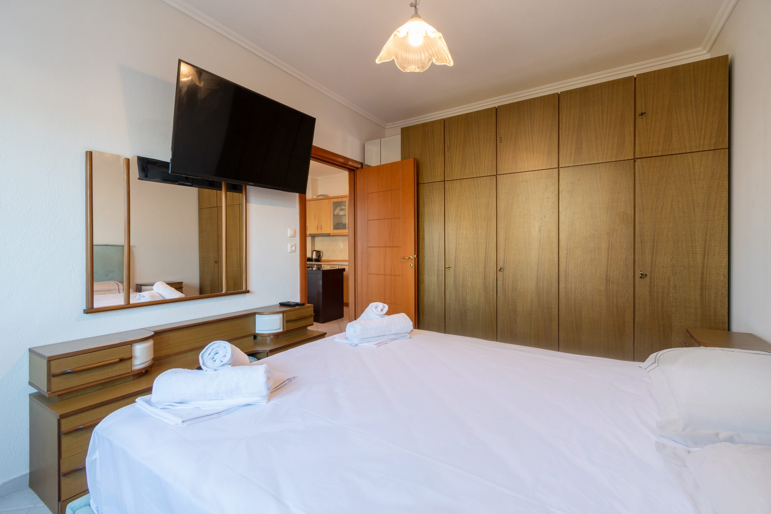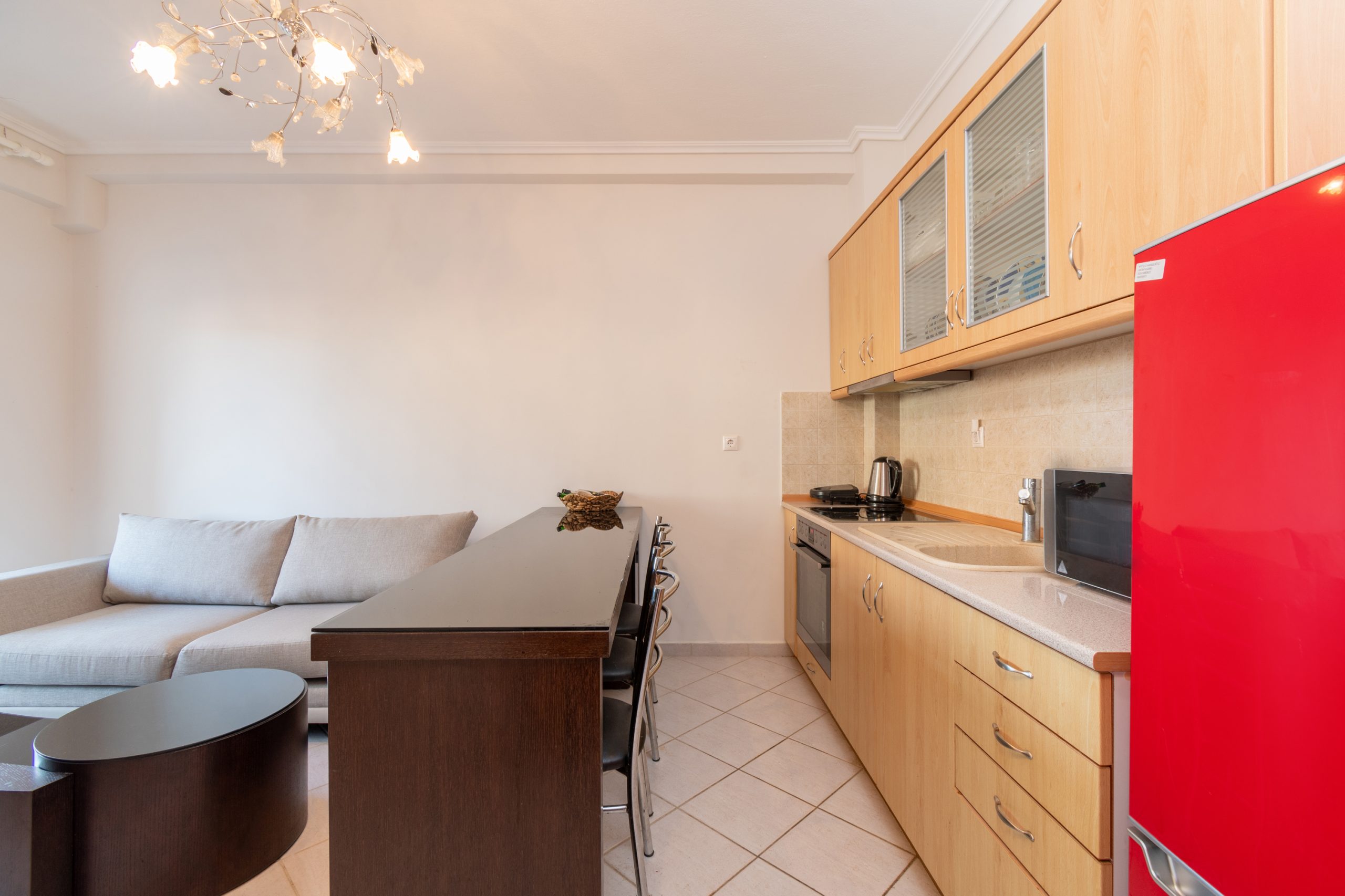 The room size is 40 sqm. It is equipped with a small kitchen, TV, air-conditioning unit, two comfortable chairs, huge wardrobe and bathroom.